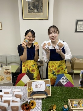 名寄市立大学知名度向上のためにお土産(クッキー、ハーブティー、カードゲーム等)を作ったり、オープンキャンパスで配布するクリアファイルのデザインを考えたりと幅広く活動しています。