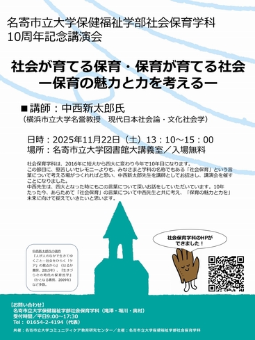 「社会保育学科10周年記念講演会」開催のお知らせ