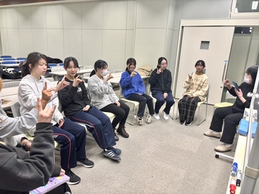 本学には手話の講義があり、履修すれば手話に触れる機会が訪れるかと思います。講義だけでなく授業外で手話によるコミュニケーションを通して手話を学ぶことができます!