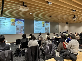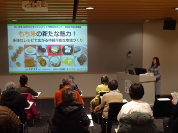本学栄養学科の福士一恵講師による「もち米の新たな魅力!多様なレシピで広がる持続可能な地域づくり」と題した講演を行い、市内外から約40人が参加しました。