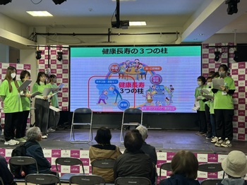 シニアと大学生の多世代フレイルサポーターが、フレイル予防ミニ講話やフレイルチェックを実施します。