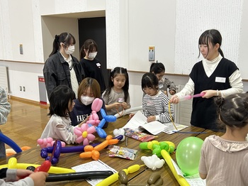 今回は24名の子どもが参加し、大学生のサポートを受けながら宿題をしたり、カードゲームやバルーンアートを楽しんだりしました。